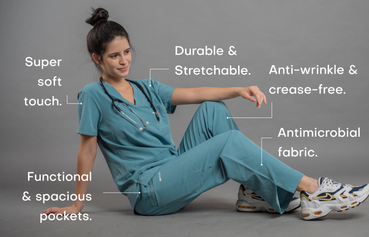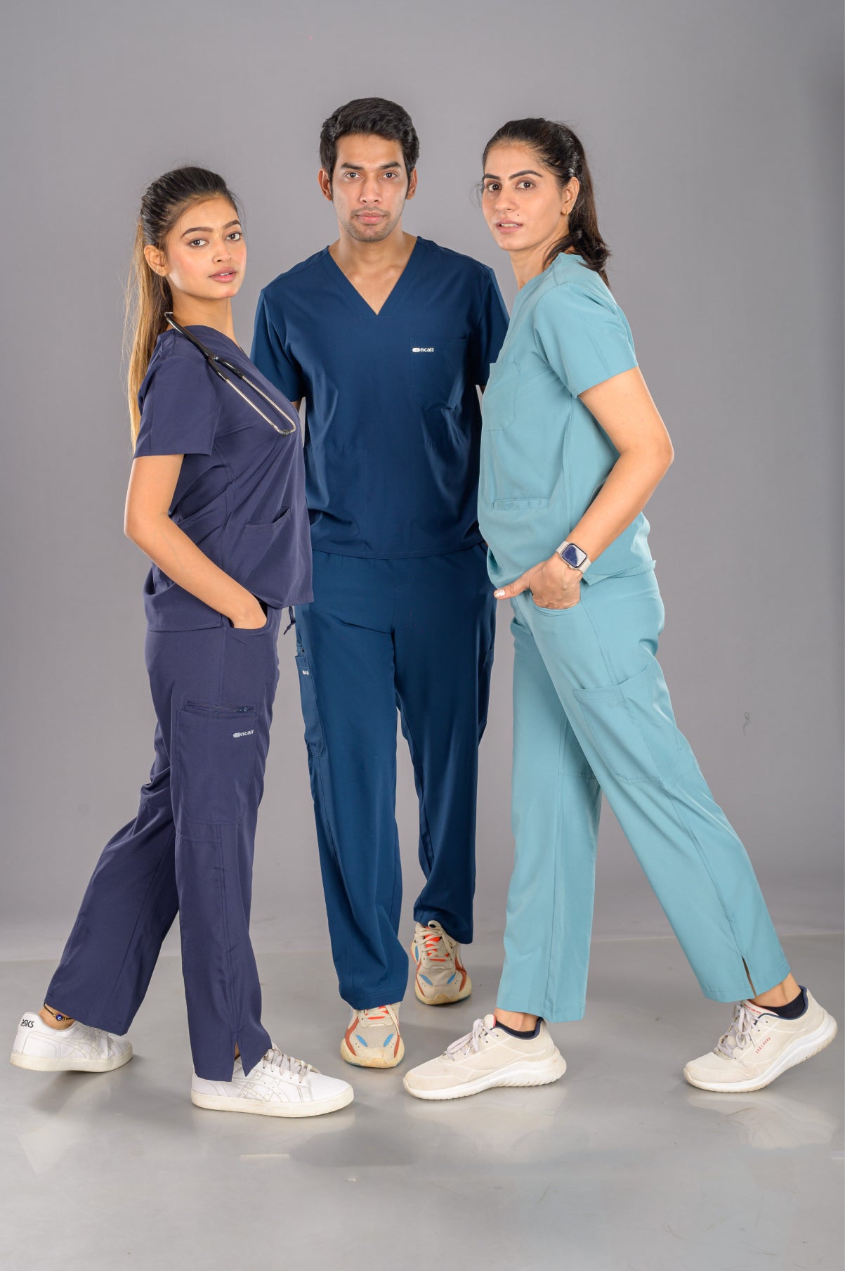 Oncall scrubs are made using premium grade polyester fabrics. They’re breathable, lightweight, dry fast, wrinkle resistant, stretchable – just like your sportswear. ( let’s be honest – medicine is an adventure sport ! )